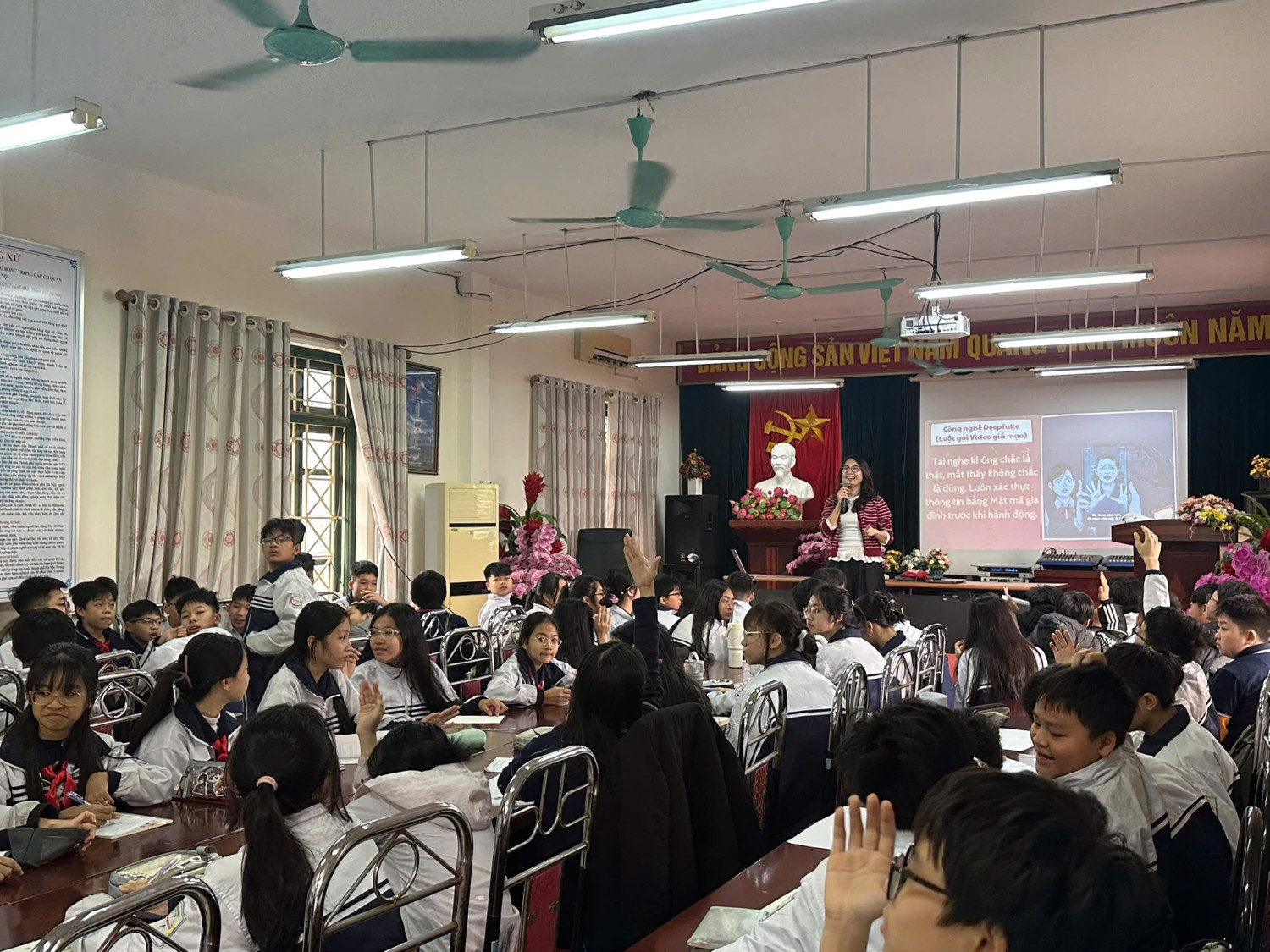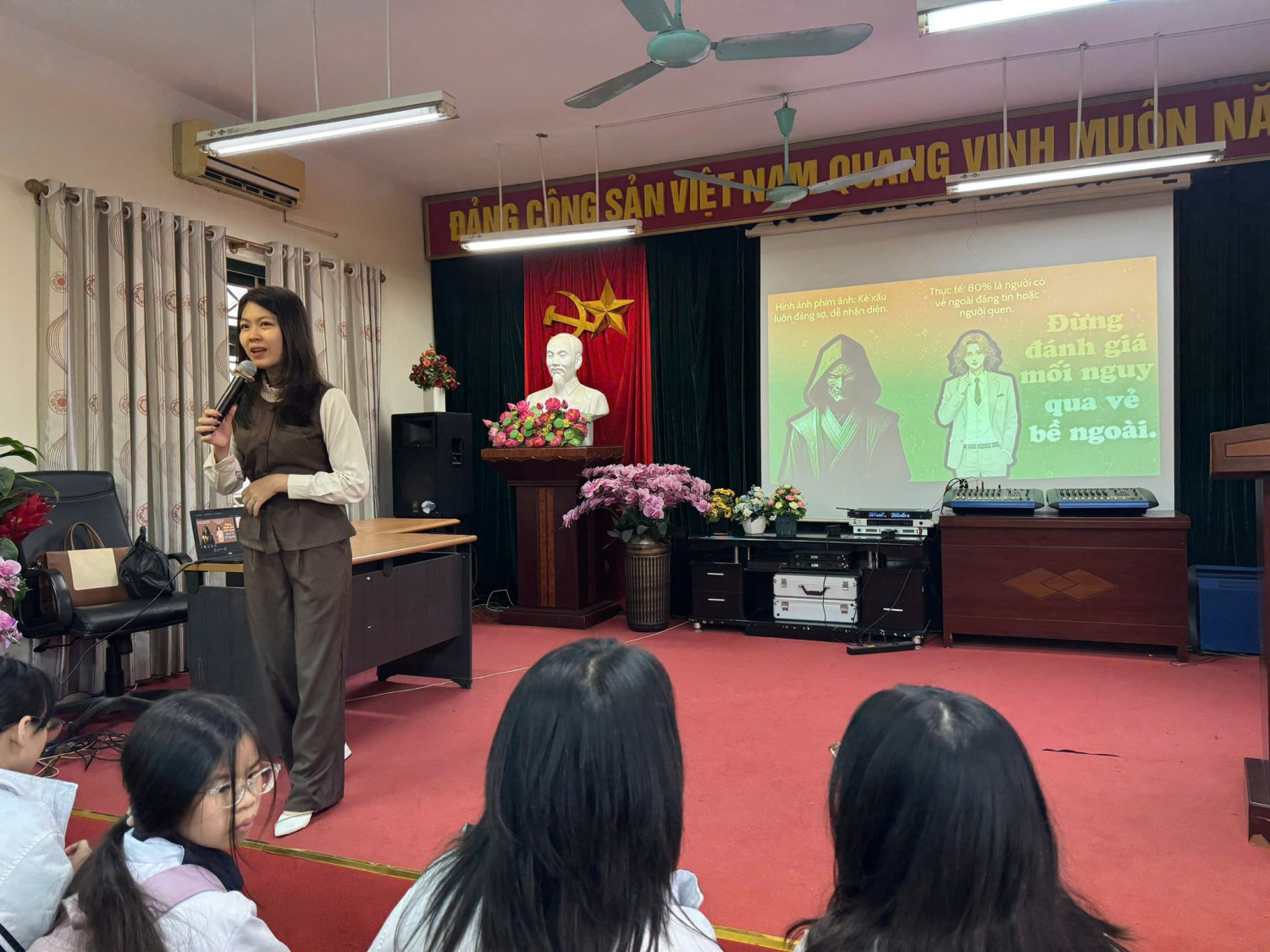 Kỹ năng sống còn trên không gian mạng: Trong thời đại số, "bắt cóc" hay lừa đảo không chỉ diễn ra ngoài đời thực. Các cô đã giúp các bạn hiểu rõ cách bảo vệ thông tin cá nhân và ứng phó với những lời mời gọi nguy hiểm trên mạng xã hội.