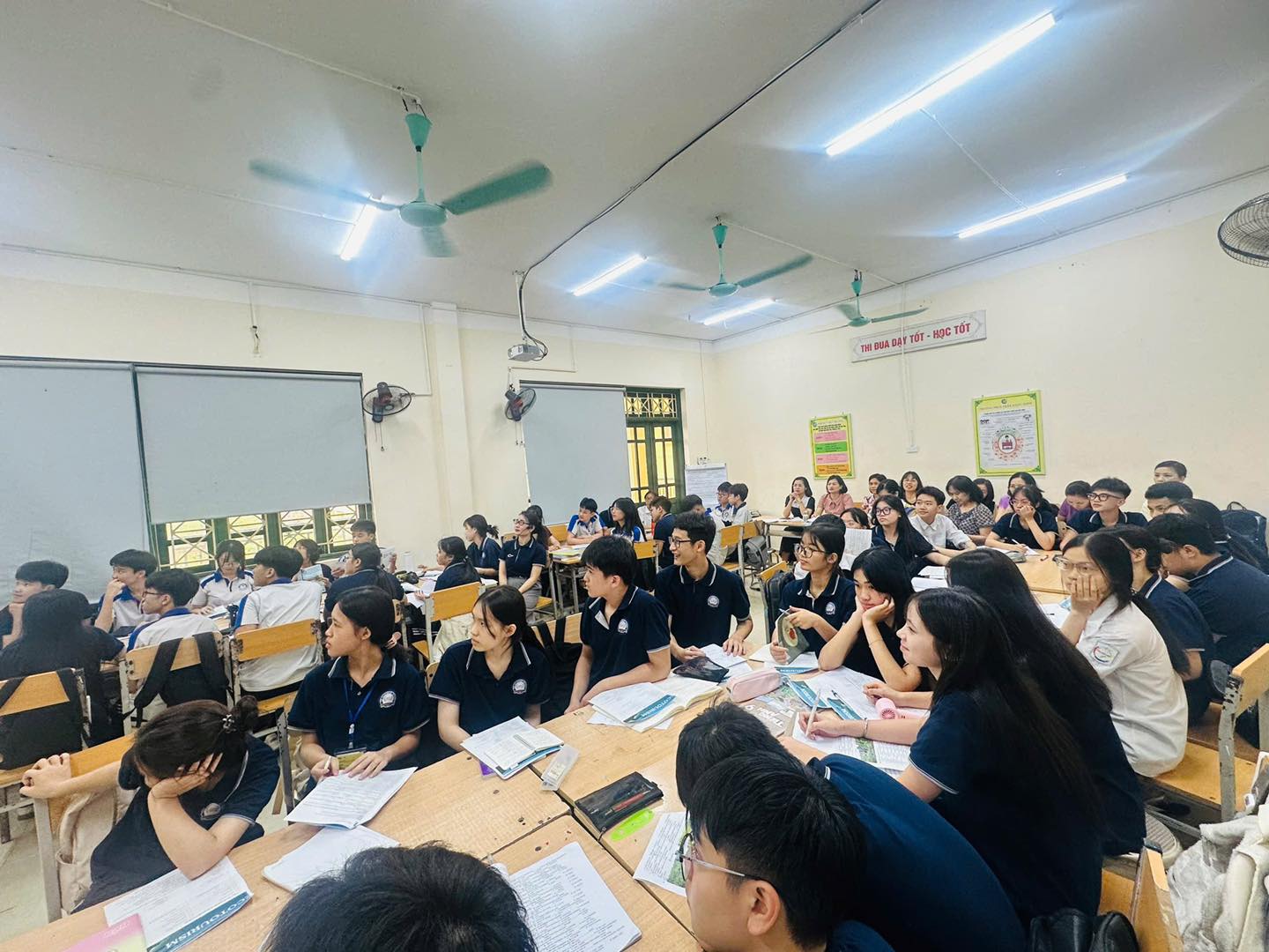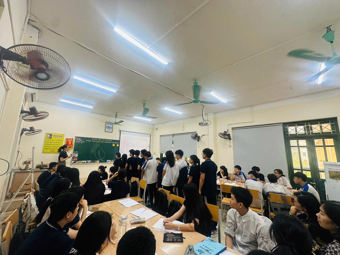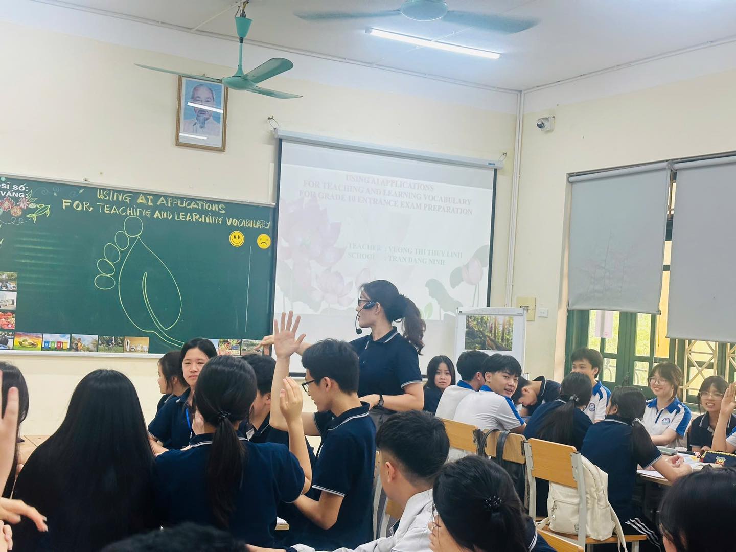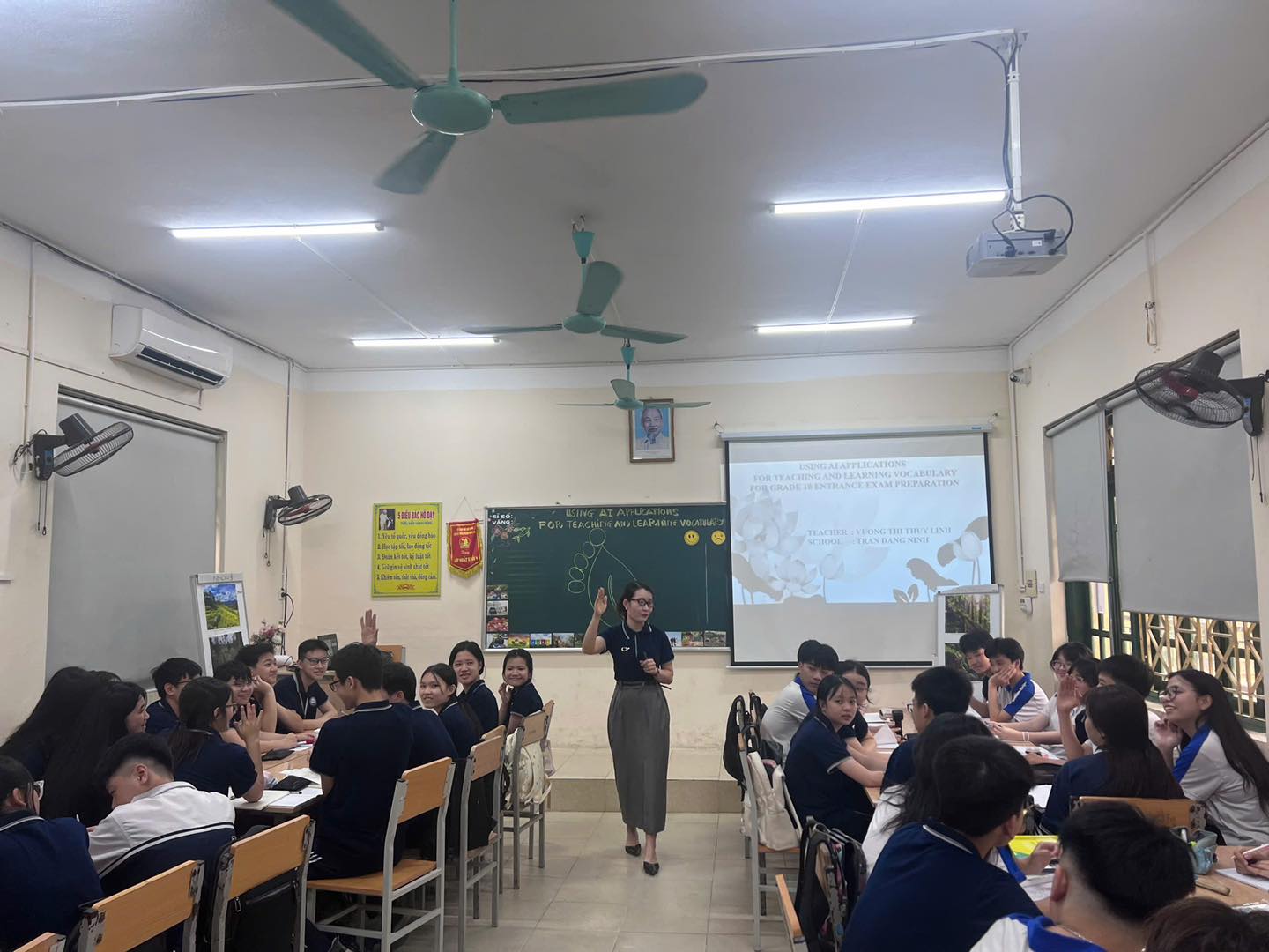 Tiết dạy do đồng chí Vương Thị Thuỳ Linh thực hiện cùng tập thể học sinh lớp 9A4 đã mang đến một giờ học hiện đại, sinh động và bám sát định hướng ôn thi. Nội dung bài học được xây dựng theo cấu trúc đề thi vào lớp 10, tập trung vào các dạng bài từ vựng thường gặp, đồng thời tích hợp các công cụ AI hỗ trợ học tập hiệu quả.