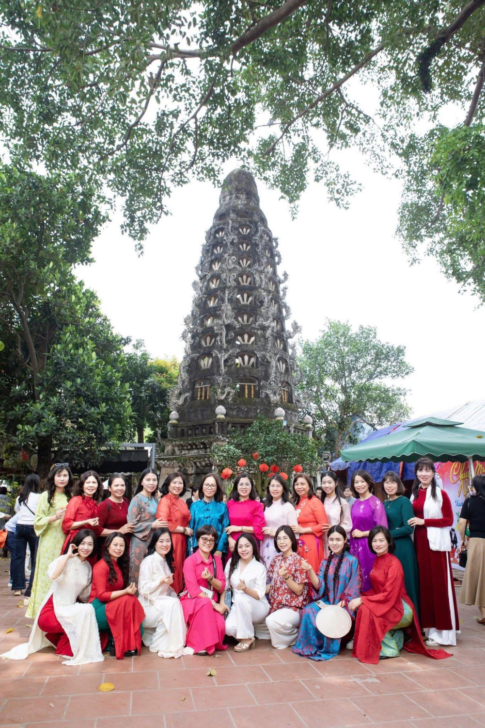 Các thầy cô được chiêm ngưỡng gần 300 pho tượng cổ bằng gỗ, đất nung và đồng – kho tàng nghệ thuật quý giá của xứ Đoài. Trước tòa bảo tháp Cửu phẩm Liên Hoa uy nghi, mỗi người như cảm nhận rõ hơn sự an yên lan tỏa trong tâm hồn, gửi gắm lời cầu chúc cho gia đình và nhà trường một năm mới thuận hòa, hanh thông.