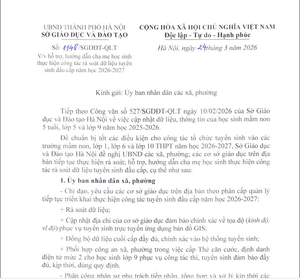 HƯỚNG DẪN TUYỂN SINH VÀO LỚP 10 NĂM HỌC 2026-2027
