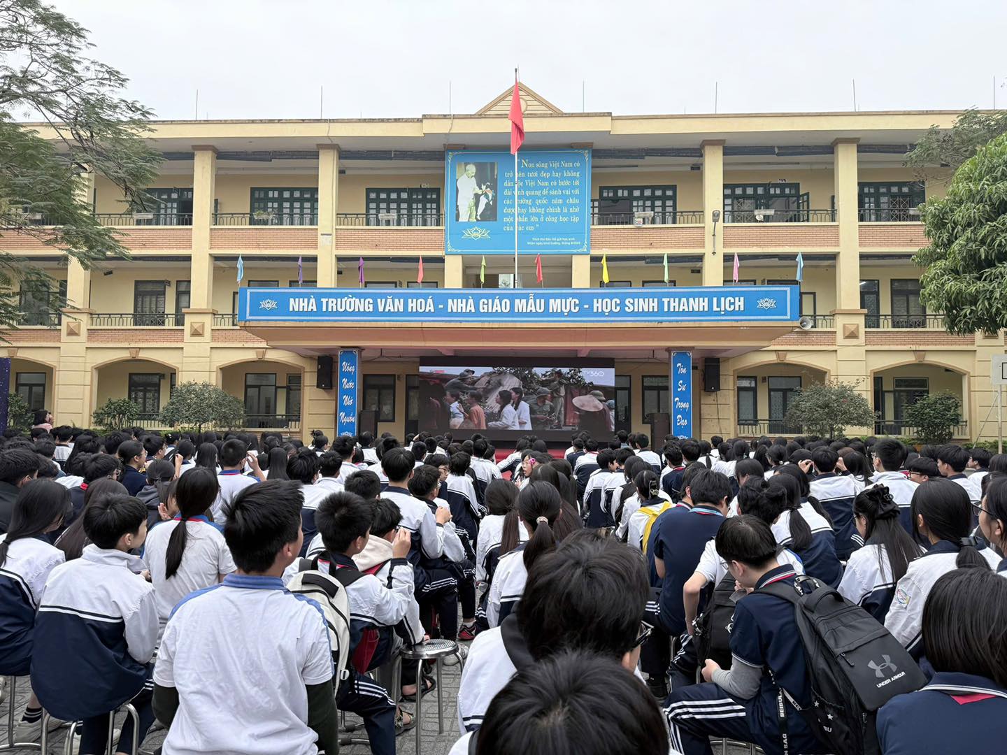 Nhân dịp này, nhà trường cũng tổ chức chiếu bộ phim “Mưa đỏ” nhằm chào mừng ngày thành lập Đảng, qua đó giáo dục truyền thống yêu nước, lòng tự hào dân tộc và khơi dậy tinh thần trách nhiệm trong mỗi HS.