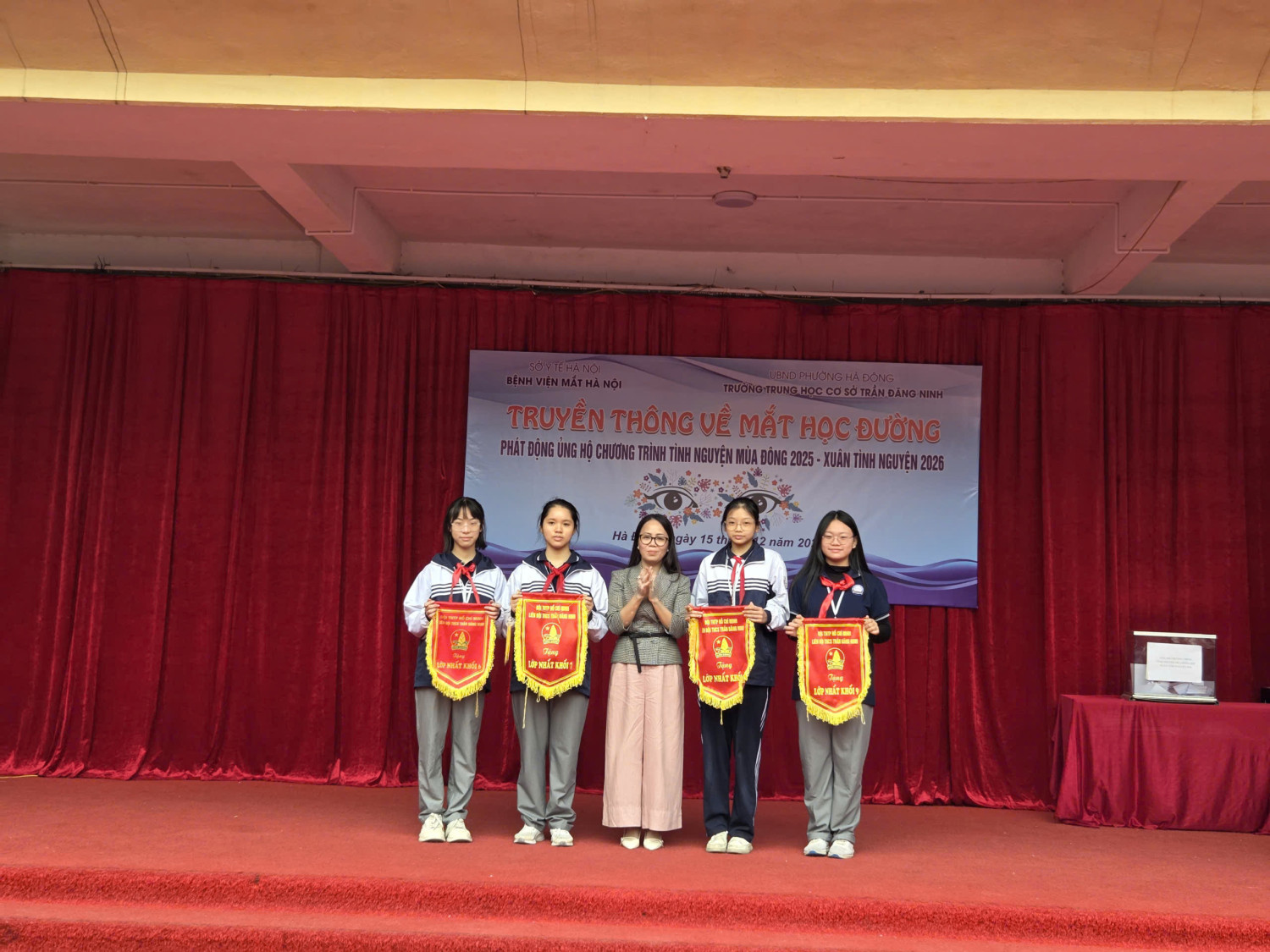 Nhà trường trân trọng cảm ơn Bệnh viện Mắt Hà Nội và quý đại biểu đã đồng hành; cảm ơn thầy cô và các em học sinh đã hưởng ứng tích cực để chương trình diễn ra ý nghĩa, thiết thực và giàu tính nhân văn.