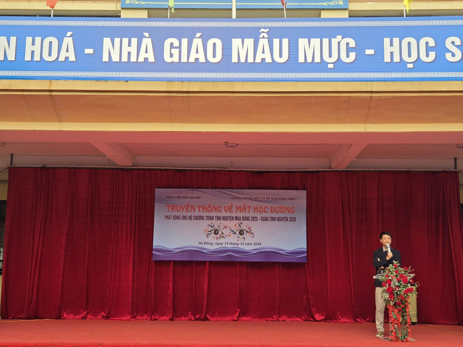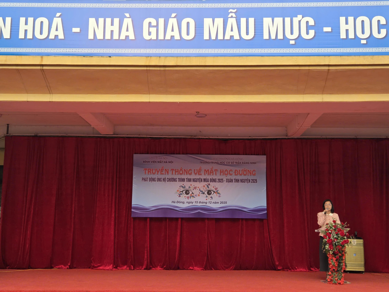 Đôi mắt là “cửa sổ tâm hồn”, là hành trang vô giá trên mỗi chặng đường học tập và trưởng thành của học sinh. Trong bối cảnh cường độ học tập cao cùng thói quen sử dụng thiết bị điện tử thường xuyên, nguy cơ ảnh hưởng đến thị lực học đường ngày càng đáng lo ngại. Với mong muốn chung tay bảo vệ, chăm sóc và nâng cao sức khỏe đôi mắt cho thế hệ tương lai, Trường THCS Trần Đăng Ninh đã phối hợp cùng Bệnh viện Mắt Hà Nội tổ chức chương trình tuyên truyền về Mắt học đường – một hoạt động thiết thực, ý nghĩa, góp phần trang bị kiến thức và kỹ năng chăm sóc, bảo vệ thị lực cho học sinh.
