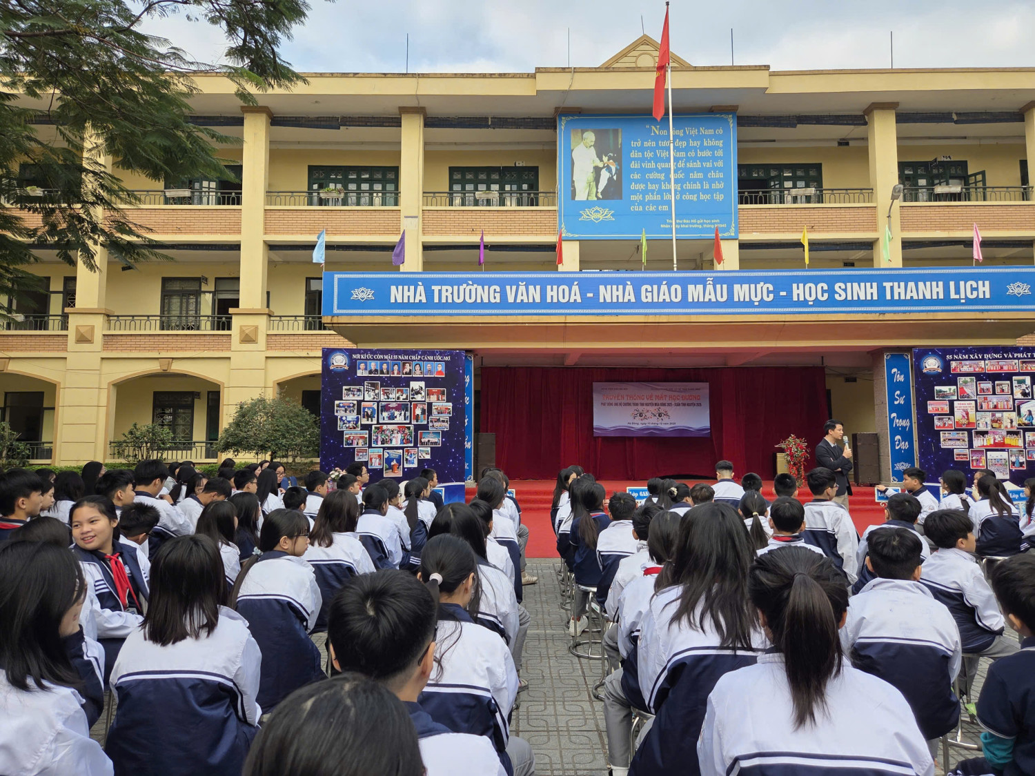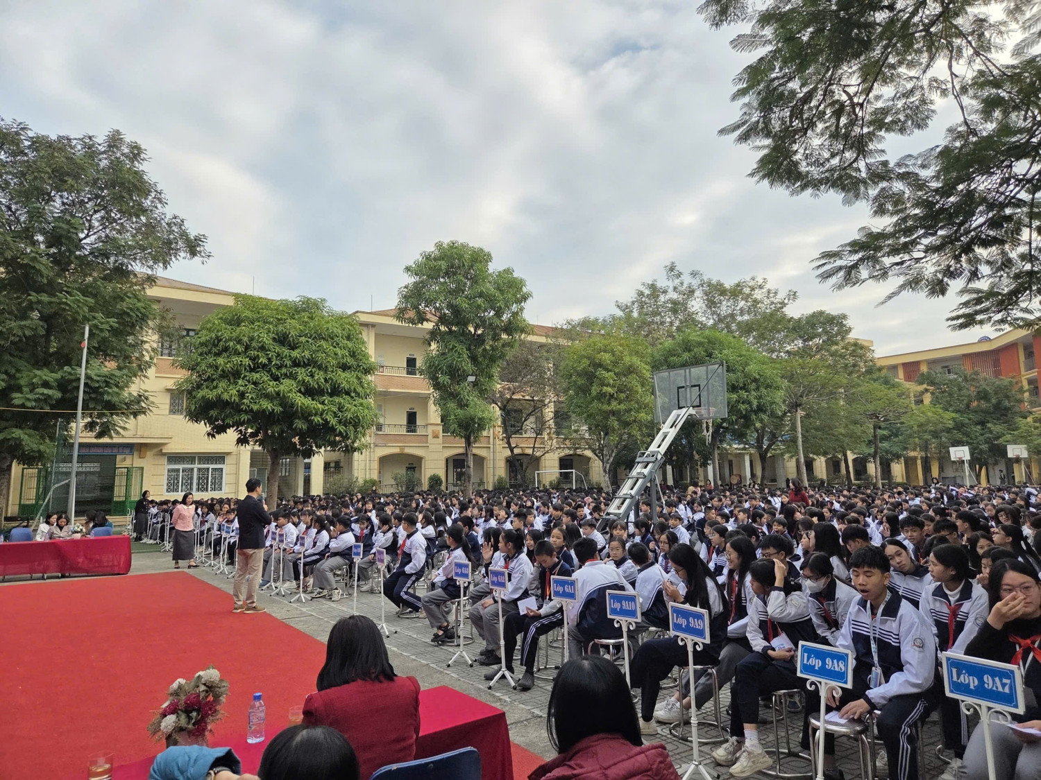Tham dự chương trình có đại diện Bệnh viện Mắt Hà Nội có BS ThS Lê Phi Hoàng; về phía nhà trường có cô giáo Kiều Thị Thu Hương – Bí thư Đảng bộ, Hiệu trưởng nhà trường, cô giáo Nguyễn Thị Thu Phương – Ủy viên BCH Đảng bộ, Phó chủ nhiệm UBKT Đảng ủy, Phó Hiệu trưởng nhà trường; cùng toàn thể cán bộ, giáo viên, nhân viên và gần 2000 học sinh nhà trường. Tại buổi tuyên truyền, bác sĩ đã chia sẻ những nội dung quan trọng về chăm sóc mắt học đường, giúp các em nâng cao nhận thức, hình thành thói quen tốt để giữ gìn đôi mắt sáng khỏe mỗi ngày.