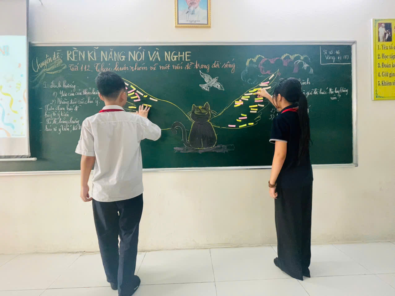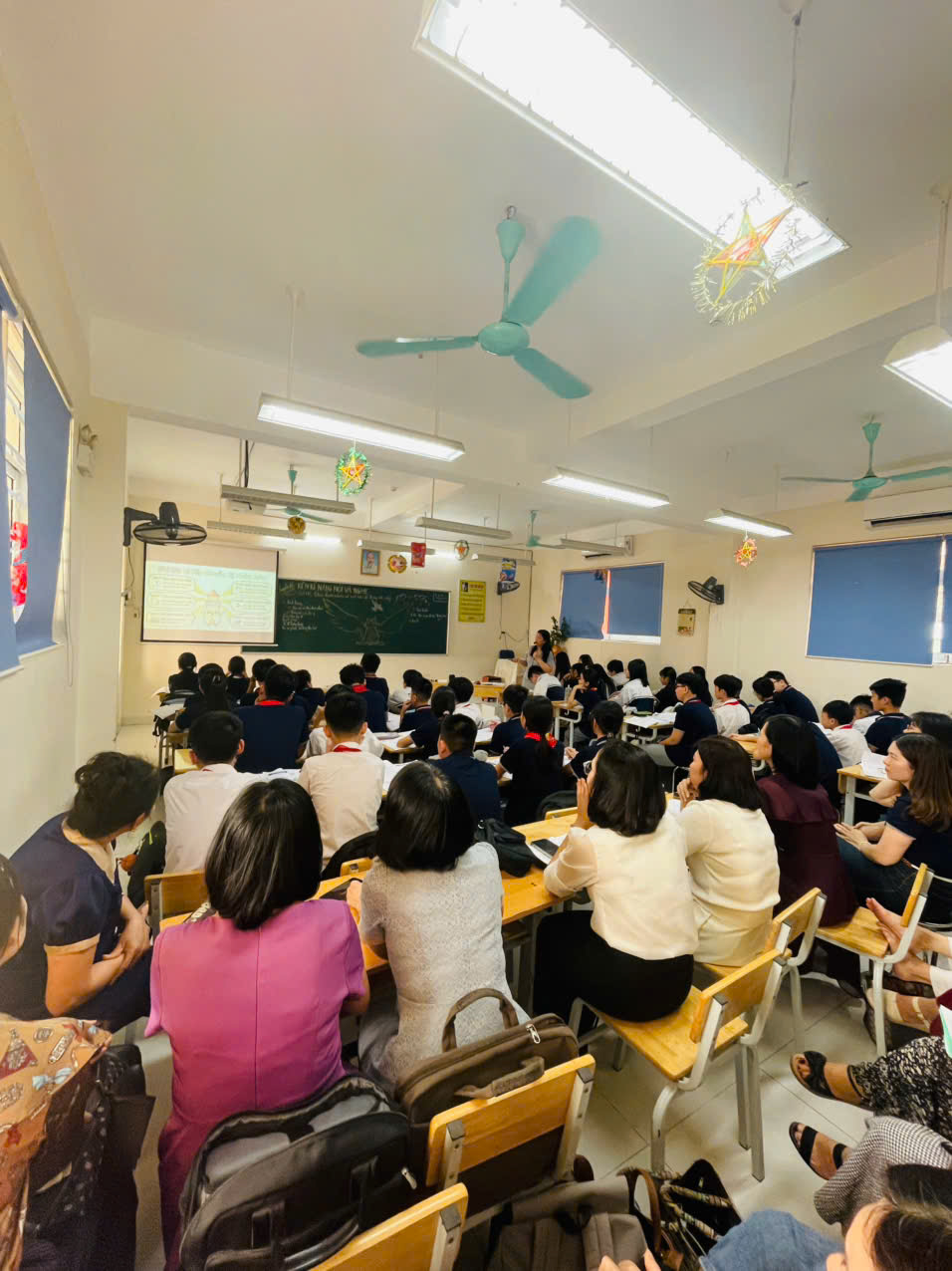 Điểm nổi bật trong tiết dạy là việc tích hợp năng lực số trong quá trình dạy học, dưới sự thực hiện của cô Trần Thị Tuyết Mai. Trong tiết học, giáo viên đã linh hoạt ứng dụng các công cụ AI và nền tảng số như: Vẽ tranh bằng công cụ Gemini, học sinh trực tiếp sử dụng công cụ Notebook để vẽ sơ đồ tư duy sinh động, Canva thiết kế SĐTD, bài giảng trình chiếu, làm video AI, sử dụng Padlet để học sinh có thể nhận xét, đánh giá cho từng cá nhân, Bảng kiểm, phiếu phản hồi sau tiết học để nắm bắt năng lực nhận thức của học sinh. Việc tích hợp công nghệ không chỉ làm tăng tính sinh động, hấp dẫn của tiết học mà còn giúp học sinh từng bước làm chủ các công cụ số, biết khai thác thông tin một cách hiệu quả và có trách nhiệm. Đây chính là bước chuẩn bị cần thiết để các em thích ứng với môi trường học tập và làm việc trong thời đại chuyển đổi số.